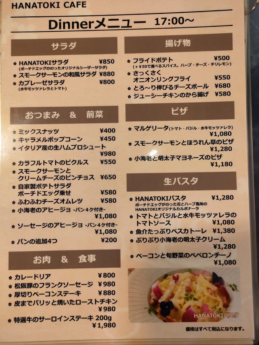 - HANATOKI Lunch - At just ¥1,480, enjoy a well-balanced meal that includes an appetizer, main course, and drink. Highlights include the Small Shrimp Mentaiko Cream Pasta gushing with flavor.